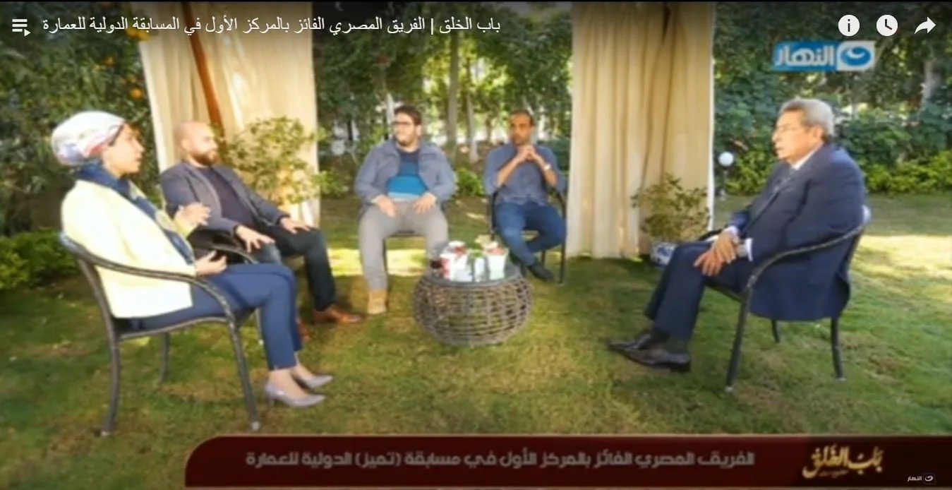 world architecture“Five Egyptian architects win Rifat Chadirji Prize 2020 with Living Pedestrian Bridge Over The Nile.” Landscape Middle East“Five Egyptian architects win prestigious architecture award for the first time in award’s history” bustler“Five Egyptian architects win the Tamayouz Excellence Award - Rifat Chadirji Prize 2020” archdaily“Living Pedestrian Bridge over the Nile” sky news عربية“مصريون يقتنصون "جائزة دولية" تنتصر "للإنسان والطبيعة"” stir world “Five Egyptian architects win Rifat Chadirji Prize 2020 for ‘living bridge over the Nile” intelligent living“An Elegant Living Bridge Proposal By Egyptian Architects Won The Rifat Chadirji Prize 2020” intelligent living“Five Egyptian architects win the Tamayouz Excellence Award - Rifat Chadirji Prize 2020” Youm7“جسر يصل برج القاهرة بالمتحف المصرى يفوز بجائزة دولية للعمارة.. اعرف حكايته” Scene Now “Le Phare: How This Egyptian Design Lit a Path to Nutrition in Africa” amazing architecture“Le Phare: An architectural prototype for combating hunger in highly polluted regions in Africa” arkitera“1st Prize, “Rıfat Chardirji Prize – A Living Pedestrian Bridge Over The Nile” International Competition” Sada elbalad“مصممو ممشى "ربط برج القاهرة بالمتحف المصري" يكشفون مزايا المشروع” ِAl-Watan“فريق معماري يصمم مشروعا لربط برج القاهرة بالمتحف المصري” metalocus“Winners of the Rifat Chadirji Prize 2020. A living pedestrian bridge over the Nile” ِAl-Ahram“شبابُ مصر.. إشراقة فى جبين الوطن” e-architect“Living Pedestrian Bridge Over The Nile in Cairo, Egypt” amazing architecture“Five Egyptian architects won Rifat Chadirji Prize 2020- Living pedestrian bridge over the Nile.” مصريون يصممون جسر مشاه فوق نهر النيل يربط المتحف المصري ببرج القاهرة "مصر تستطيع - معماريون مصريون يحصدون المركز الأول في جائزة دولية بـ" جسر البروج والمتحف فريق من المعماريين المصريين يحصلون علي المركز الأول في مسابقة عالمية لفن العمارة بعد فوزهم بجائزة دولية لتصميمه.. شاهد تفاصيل مشروع جسر مشاه على النيل مع مهندسي المشروع الفريق الهندسي الفائز بجائزة الجادرجى في تحيا مصر باب الخلق | الفريق المصري الفائز بالمركز الأول في المسابقة الدولية للعمارة